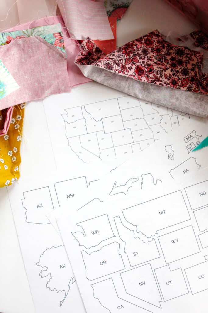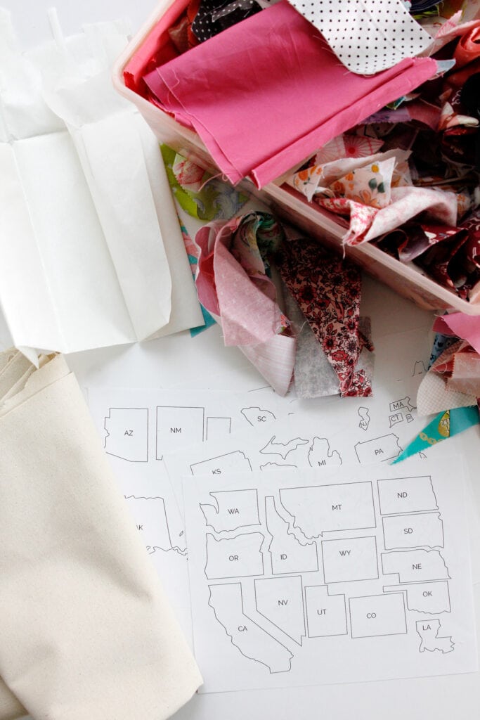 I’m so excited to share this project with you today – it’s an update from my original project dating back to 2011! Yikes that’s a long time! But I still love this project, so I wanted to share an updated post with all the information and templates you need to make your own fabric scrap map!