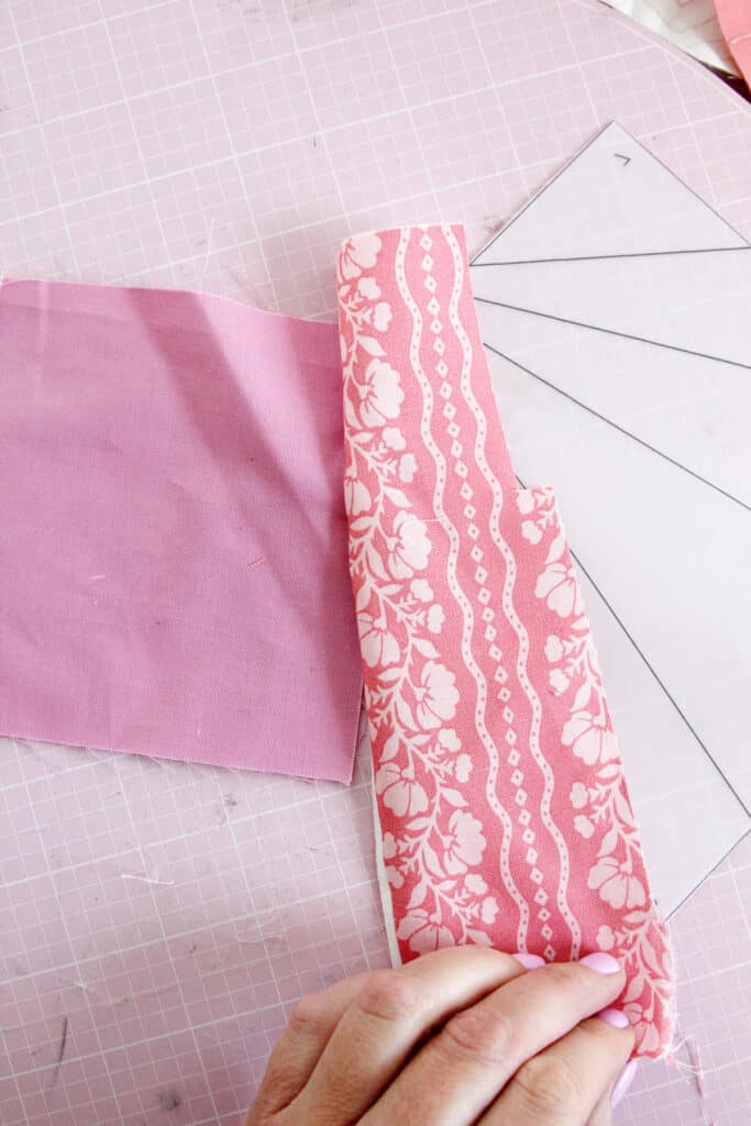 Gently fold over scrap 2 to make sure it will completely cover section 2 plus 1/4″ seam allowance.