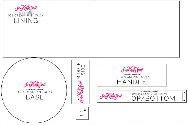 Download the pattern pieces for this ice cream pint cozy by clicking on the pink button below. Enter your email to join my newsletter and then you’ll be taken to the download page. Print the pattern at 100% or DO NOT SCALE. To print the pattern AND instructions easily, grab the EASY-TO-PRINT version HERE.