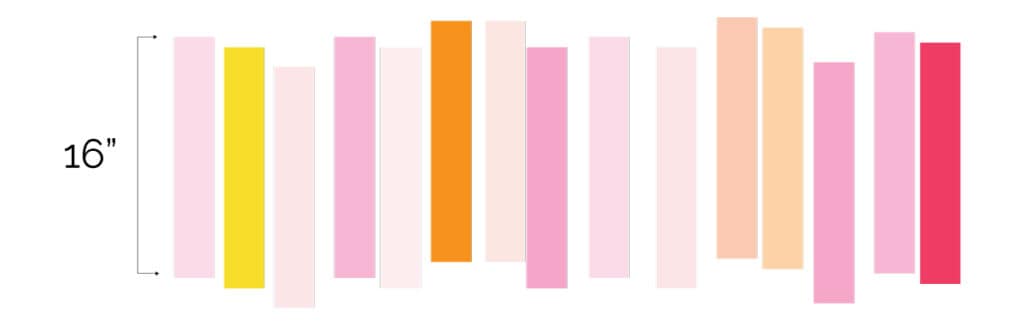 We are going to start by picking 15 strips from the roll. Cut them down to 16″.