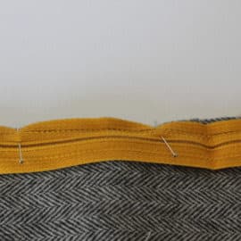 Lay the second main piece on top of the zipper and pin it on. If you have too much fabric, pin a little pleat over the zipper.