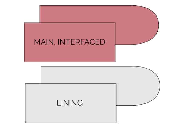 Cut 1 piece from fabric with a flap and 1 without using main fabric that has already been interfaced.