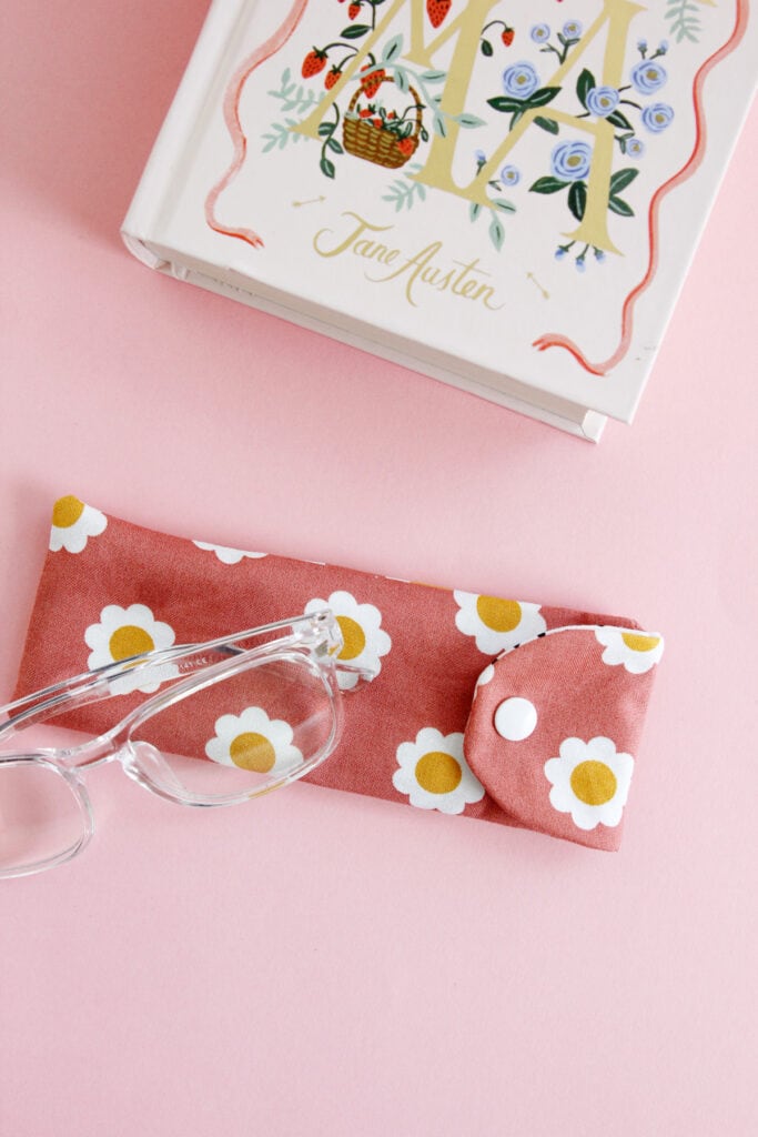 Protect your specs with this reading glasses case sewing pattern! This cute little pouch is just right size and snaps shut with a cute snap!