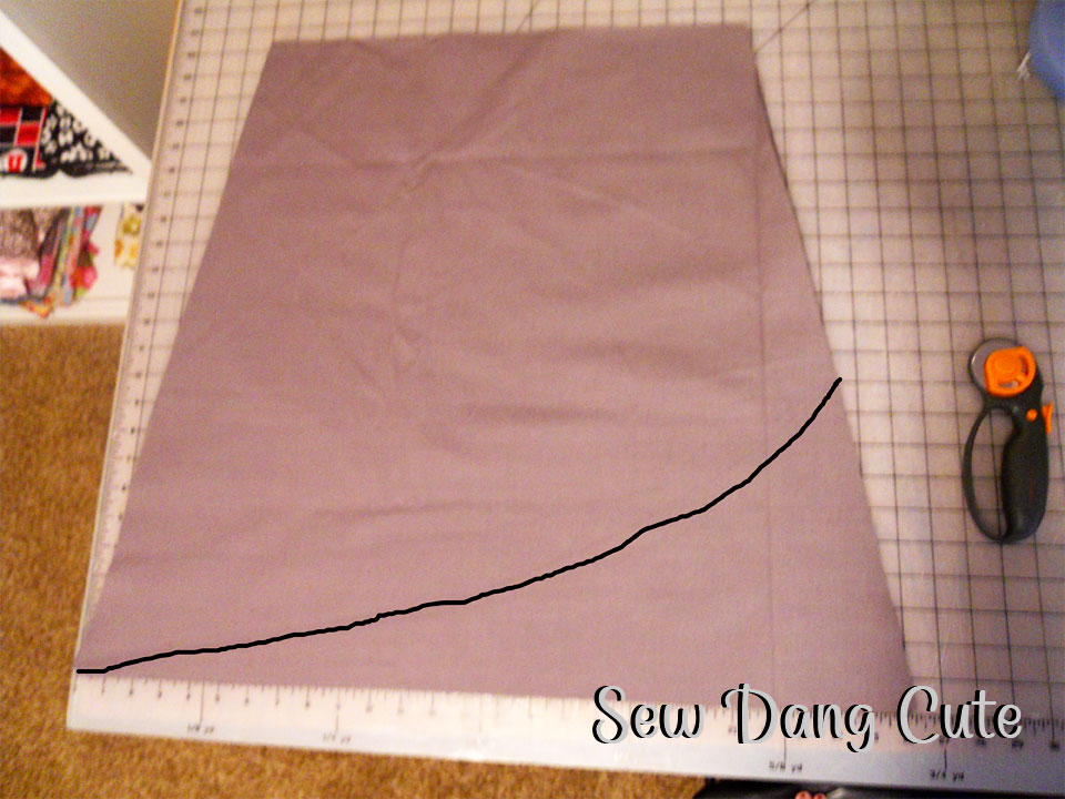 5. Take one of your skirt pieces and draw the angle you want your ruffle to go on the skirt front.